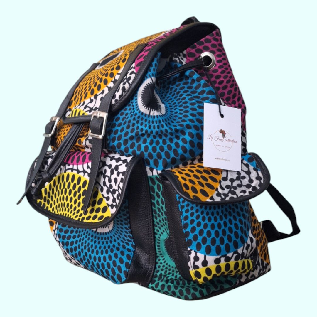 Ce sac à dos se distingue par ses motifs circulaires et ses points de différentes tailles, créant un effet visuel captivant. Les couleurs dominantes, notamment le jaune, le bleu, le rose, le vert et le noir, ajoutent une touche de vivacité et de style unique. Doté de deux sangles noires avec des boucles argentées pour une fermeture sécurisée, ce sac est non seulement élégant mais aussi pratique. Plusieurs poches latérales offrent un espace de rangement supplémentaire pour vos essentiels. Fabriqué dans un tissu robuste et de haute qualité, ce sac à dos est idéal pour un usage quotidien ou pour vos voyages.