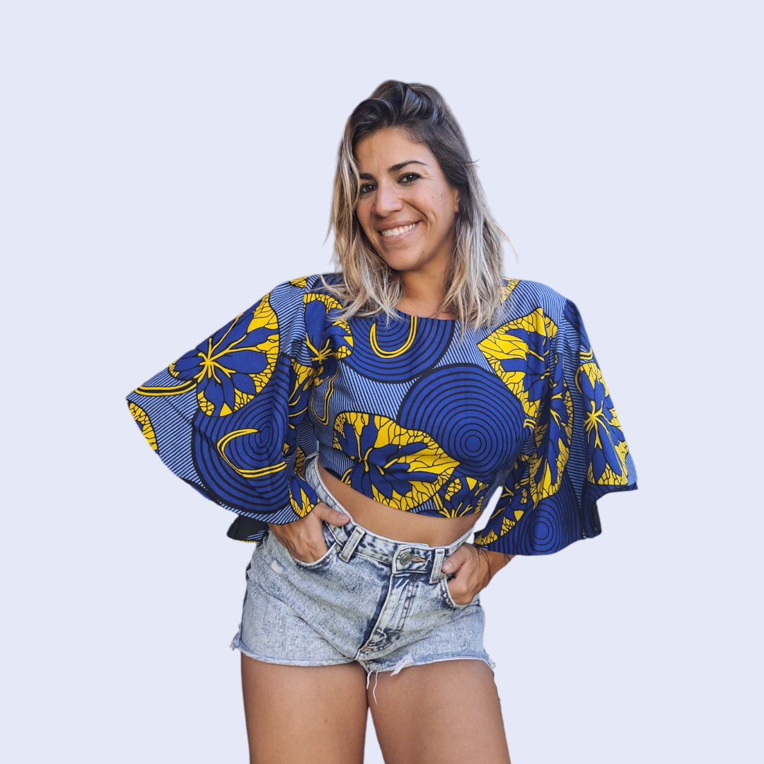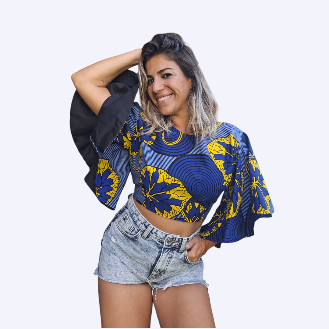 Un haut à manches amples, qui a un style court, restant juste au-dessus de la taille Idéal pour une journée de shopping ou une promenade dans la ville Son design vibrant et coloré le rend parfait pour les événements en plein air pour une réunion entre amis …